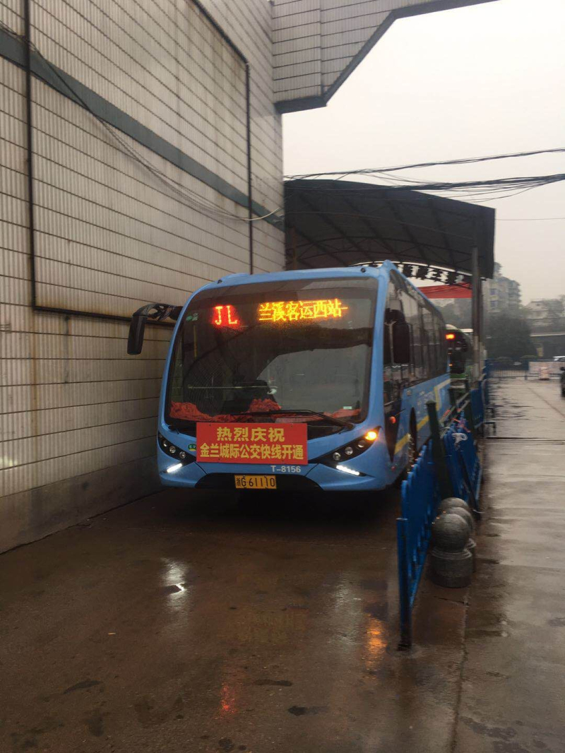 項目東起丹溪路首末站,西至蘭溪客運西站,全線長約28.9km,設14對中間站點(金華段10對),預留龍乾大道站,預留鐵路金華客站南廣場首末站。丹溪路首末站因項目用地未落實,臨時租用位于李漁路永康街交叉口東南角7.11畝的場地,用于建設BRT5號線和金蘭城際交公快線的臨時首末站。金蘭城際公交快線金華段總投資約6300萬元,于2017年12月28日投入運營。線路的開通解決了金華-蘭溪公共交通“慢”的痛點,金蘭兩地空間距離進一步拉近,建立起兩地市民交流的快捷通道,助力共建、共融、共享、共贏的都市圈建設。