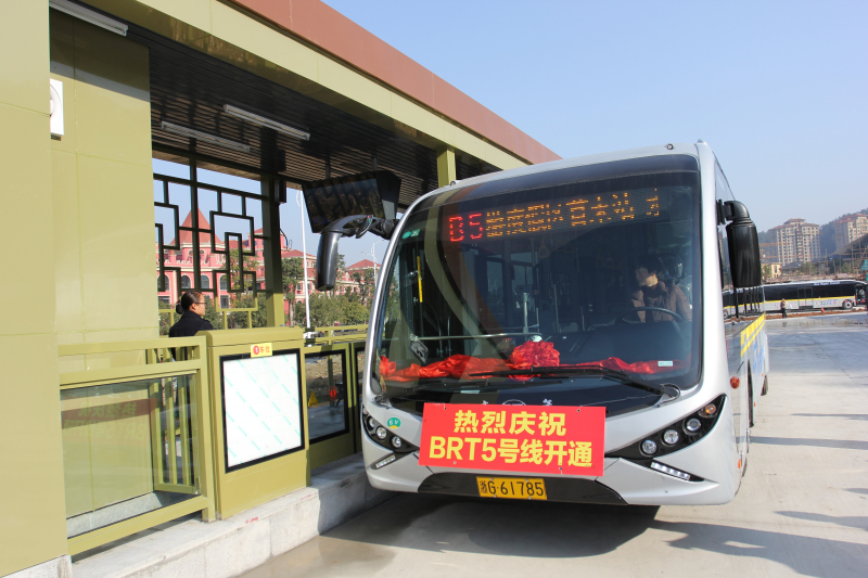 BRT5號線由主線和支線組成。主線北起金華站南廣場首末站(現(xiàn)階段利用丹溪路首末站或永康街臨時首末站發(fā)車),南至仙源湖旅游度假區(qū)首末站,線路全長17.2km,設(shè)置中間站臺14對(新增站臺10對、利用原BRT1號線、4號線站臺4對)。支線由市體育中心站,至新能源汽車小鎮(zhèn)首末站,線路全長6.6km,設(shè)置中間站臺3對。項目總投資估算1.45億元,2017年12月26日投入運營。BRT5號讓仙源湖旅游度假區(qū)、新能源汽車小鎮(zhèn)與主城區(qū)實現(xiàn)快速通達,既是一條到休閑觀光交通線,又是一條服務(wù)于小鎮(zhèn)居民、產(chǎn)業(yè)工人的交通出行專線。
